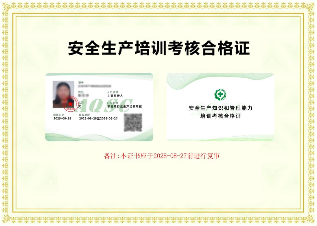 (非高危)生产经营单位主要负责人证书