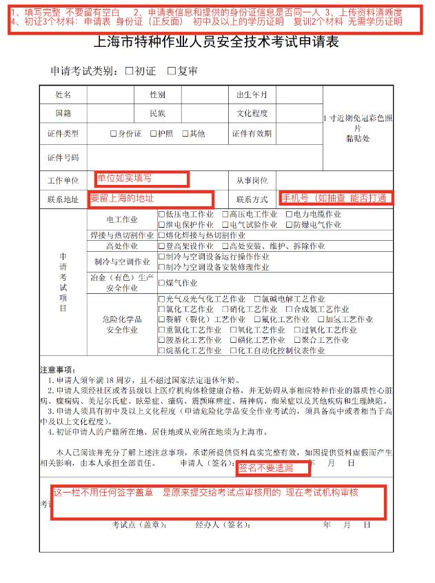 ③ 《上海市特种作业人员安全技术考试申请表》1张(本公众号-在线报名-表格下载中下载、也可现场填写)