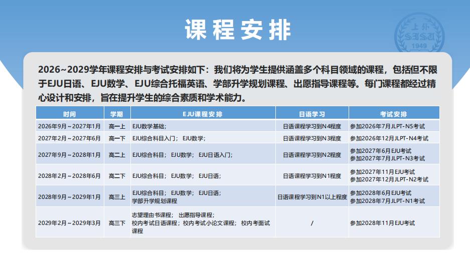 学生所接受的课程包括语言课程、EJU专业课程以及个性化拓展课程三方面。