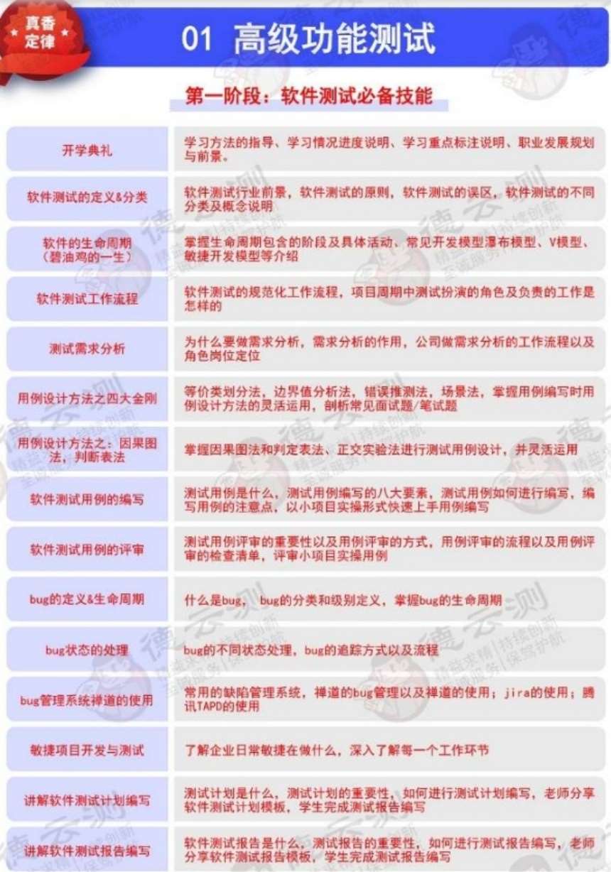 机构简介:德云测简介:德云测是上海精创至诚软件技术服务有限公司旗下的软件测试开发培训品牌。创办于2021年。核心成员来自于互联网大厂或世界500强公司,统招本科及以上学历。创始人是中国人邮出版社签约作者,著有2本自动化测试开发书籍。作为科班出身,从事开发和测试工作将近15年,曾在多家世界500强公司工作,涉及多个领域,也曾到海外进行敏捷项目管理的学习和研究。作为测试开发工作的先行者和布道者,从2011年写书进行技术分享开始,已经带出了5万+学员。德云测6大别县一格的特色:1.授课模式是线下教室+线上网课的同步直播教学,课后自动生成录播回放,方便回看。2.以“德云社式”的轻松教学方法,辅之以原创的趣味课件,力争在课堂中把枯燥无味的IT技术让学员们掌握,所谓兴趣才是坚持下去的源动力。3.教学项目领域丰富,且是企业真实场景(数百个接口、数百张数据库表、物联网项目真实设备等)4.课程讲的很细很深,做减法教学,提升实用性技术的深难度,删除过时知识,拒绝发资料背诵式的教学。5.用心做教学服务,可能会颠覆你的认知和想象。举例:即使就业服务老师也是测试开发;咨询班主任是测试工程师出身,还管你的学习售后;就业后,我们提供很多额外服务。6.坚持做一家温馨的小而美机构,不做大,但做强教学和就业服务。
