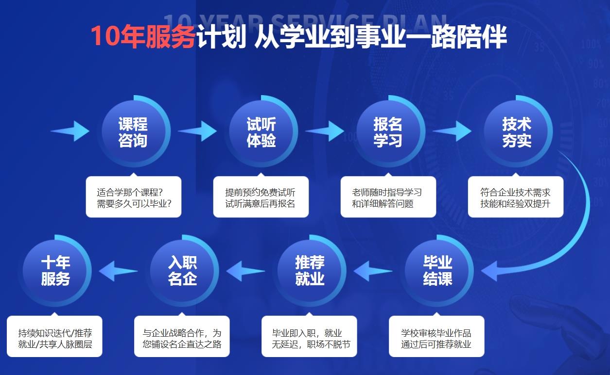 机构简介:上海是一个国际化的城市,有许多外企和跨国公司入驻,这为IT培训学校提供了与国际接轨的机会。学员可以接触到更多的国际化的技术和理念,提高自己的国际竞争力。达内教育集团成立于2002年,是一家由留学海归创办的高端职业教育培训机构,是中国一站式人才培养平台、一站式人才输送平台。达内拥有200名实训专家及1000名研发人员,目前已形成了Java、C++、C#/.Net、 PHP、嵌入式、软件测试、UID、网络营销、Linux云计算、主办会计、UED、WEB前端、Java大数据、Unity-3D、少儿电脑编程、少儿电脑创意、乐高机器人等成熟的课程体系。2014年4月3日在美国成功上市,融资1亿美金,是中国在美国上市的职业教育集团,成立至今,已形成高端培训、高级人才、青少培训、高端软件为一体的多元化、综合性的职业教育及人才服务品牌。历时十八年的发展,达内教育集团以中关村科技园区为依托,在北京、上海、广州、深圳、大连、南京、武汉、杭州、西安、苏州、成都、太原等70余个大中城市,建立了340余家职业教育中心,每年培训学生超过10万人。目前,达内已与全国20万多家雇主企业建立了人才合作关系。“诚信、创新、开放、合作”是达内的企业文化,也是达内发展的源泉,达内拥有200名顶 级实训专家及1000名研发人员,抱着对每位学员负责的态度,将课程开发做到了极 致,目前已形成了Java、C++、C#/.Net、 PHP、嵌入式、软件测试、UID、网络营销、Linux云计算、主办会计、UED、WEB前端、Java大数据、Unity-3D、少儿电脑编程、少儿电脑创意、乐高机器人等成熟的课程体系,课程内容在贴近中国企业实际需求的同时与国际接轨,达内教育集团先后与阿里云、Adobe、红帽、ORACLE、微软、美国计算机行业协会(CompTIA)、百度等国内外知名厂商建立行业培训标准,直接引用原厂新技术,确保达内课程行业领 先。二、品牌历程2001年8月:由加拿大海外专业人士在加拿大多伦多成立2002年9月:入驻中关村国际孵化园,成为首 家中关村园区的IT培训公司2003年9月:获得美国500强私人企业-美国国际数据集团IDG投资,成为中国首 家获得国际资本投资的IT培训公司2004年3月:被信息产业部授权为“全国信息技术人才培训基地”2004年10月:与新浪、搜狐、UT斯达康、百度等共同荣获“中关村优秀留学人员创业企业”2005年,达内首 家推出“按效果付费”的信贷培训模式2006年,达内成为业界首 家获得德勤“亚太区高科技、高成长500强”,并连续4年蝉联该奖项2007年,达内联合SUN公司成为业界首 家制定JAVA中国培训标准2008年1月:达内获得2007年度“十大品牌教育集团”及“受推崇IT培训品牌”荣誉2009年1月, 达内获评2008“中国十大品牌IT培训机构”2010年1月, 达内获得德勤“亚太地区高科技、高成长亚太500强”2011年,“职场传帮贷”是达内在业界首 家推出的面向个人的P2P信贷服务平台2012年8月, 达内被授予“2012年度受信赖企业”2014年4月3日赴美国纳斯达克成功上市(股票代码TEDU)2015年,达内成为业界首 家推出少儿编程的教育公司2016年,施行“因材施教,分级教学”教学体系,招生人数突破10万人,销售额突破20亿2017年,市值突破10亿美元,成为职业教育的独角兽2018年,达内携手阿里橙功商学院,强强联手培养高级网络营销人才2019年,达内、华为、院校三方携手,助力ICT人才生态建设2020年,后疫情时代 OMO赋能,开启线上与线下教学的OMO教学模式