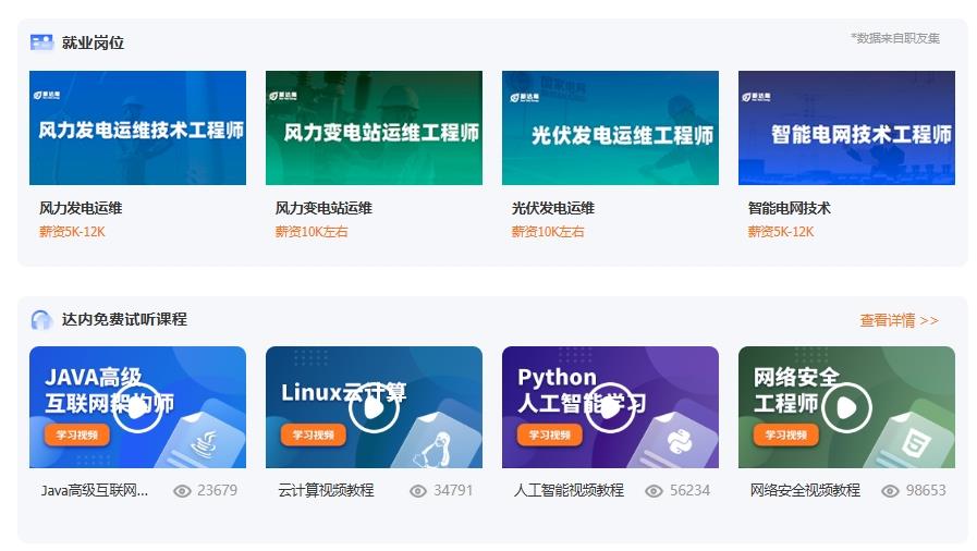 新达能,新达内教育集团旗下品牌。积极响应国家“双碳”战略号召,聚势谋远,向新而行,聚焦“新能源”领域,面向18-30周岁青年,打造覆盖风力、光伏、智能电网三大方向的热招岗位课程,定向精准培养新能源领域紧缺型技术人才,帮助更多年轻人解决就业难题,实现“稳定高质量就业”梦想,为国家绿色能源事业提供人才支撑。