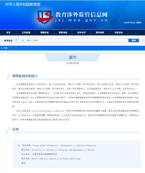 热舒夫信息技术与管理大学是中波两国政府双方学位互认协议中的大学,所颁学位获中国教育部认可。教育部涉外监管网可查询。