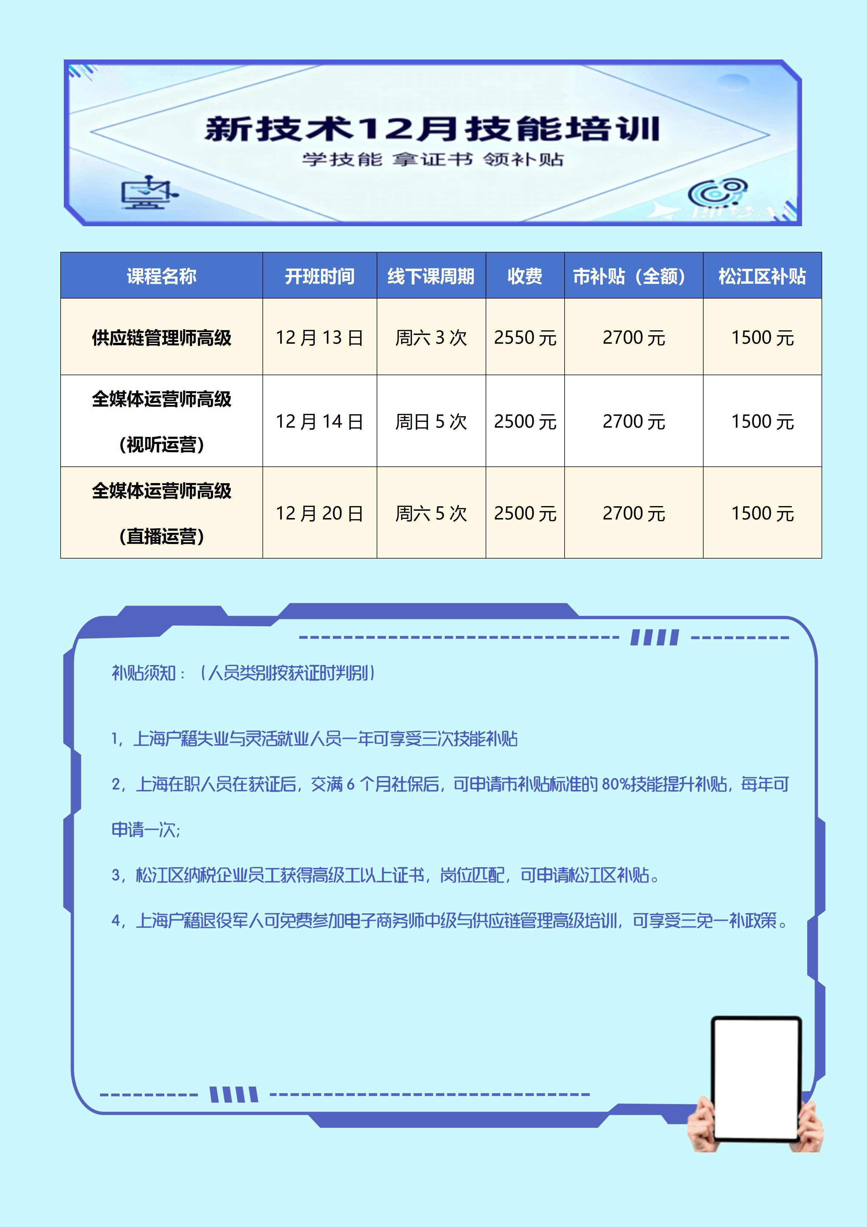 3,松江区纳税企业员工获得高级工以上证书,岗位匹配,可申请松江区补贴。