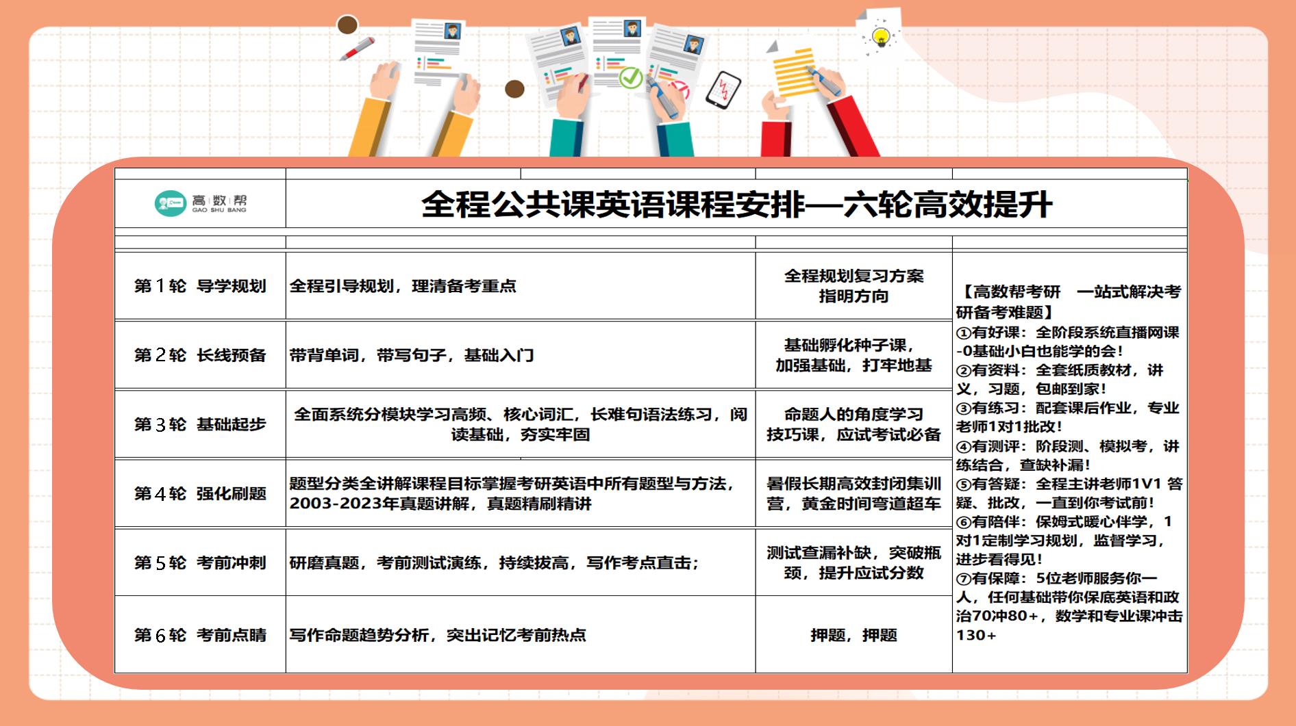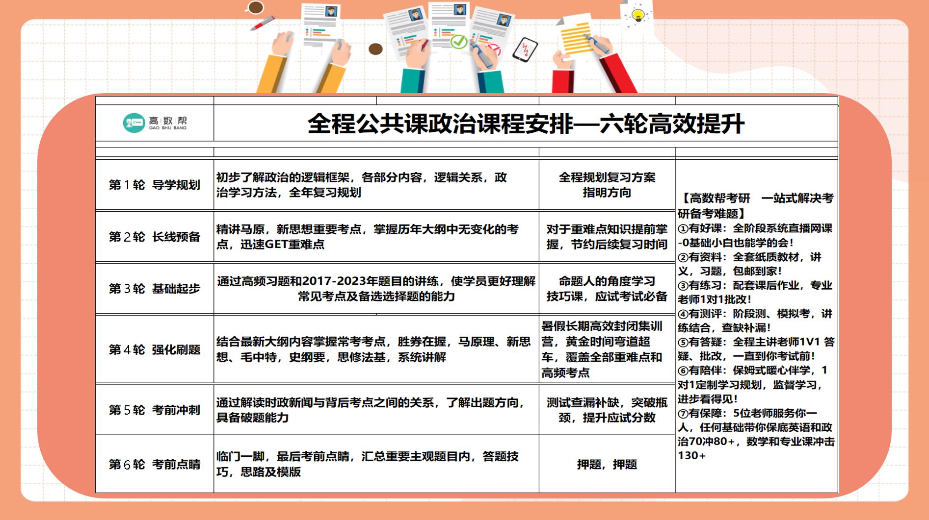⑦有保障:5位老师服务你一人,任何基础带你保底英语政治70冲80+,数学专业课冲击130+