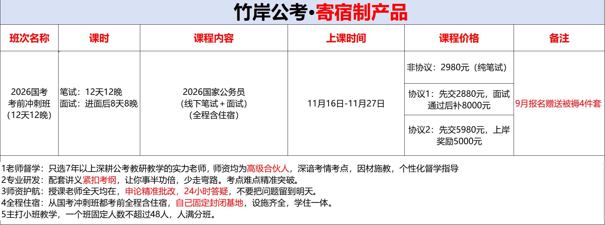 4:全程住宿:从国考冲刺班都考前全程含住宿,自己固定封闭基地,设施齐全,学住一体。