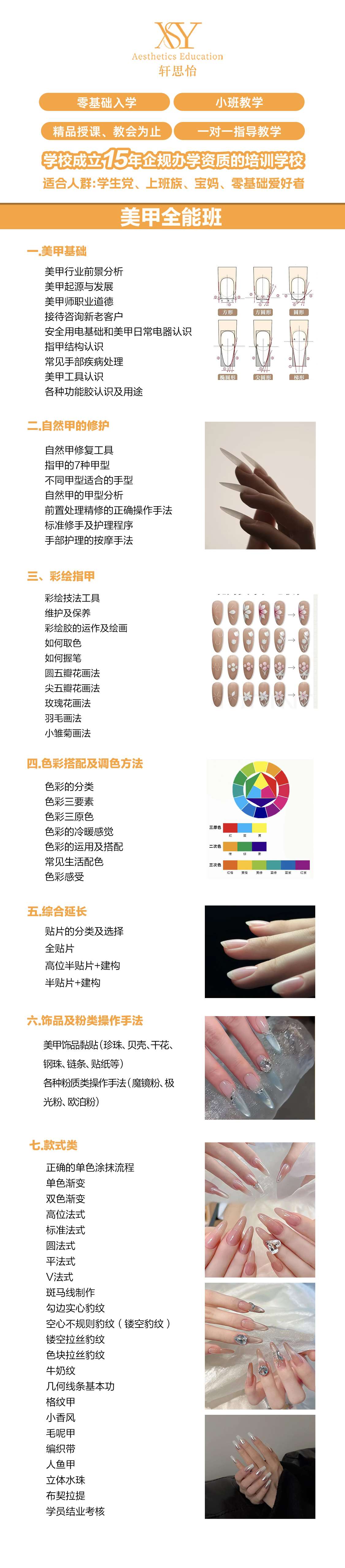机构简介:轩思怡美妆教育培训学校坐落于素有“人间天堂”之称的古城苏州,是一家致力于打造百万女性成功创业的教育培训机构。轩思怡为苏州蓬艺思形象设计总公司旗下全资子公司,经历15年打磨,蓬思来发展成为华东地区连锁美业培训机构。在吴中、园区、新区等区域设有校区,且全国16家联合姐妹校区。优质教师队伍:拥有经验丰富、富有激情的教师团队,深知如何激发学生的学习热情、引导他们掌握知识,培养学生的创新能力、解决问题的能力。多元课程设置:提供全面且多样化的课程,包含国际彩妆、高端美甲、韩式半永久、皮肤管理、时尚美发、主播培养、创业经营管理等多科。关爱学生成长:关注每一个学生的职业发展,尽可能让每位学员在学习创业就业路上找到自己的定位和激情,我们还注重培养自有人才,将优秀的学生直接留校培养,全面发展。坚守“创新教学、品质为本”办学理念,从宏观美学到微观创业,同时为社会输送一批批优秀的美业技能人才!轩思怡--品牌升级 从【新】出发!针对人群:工厂女工、宝妈、白领、下岗再就业等等对美业热爱的