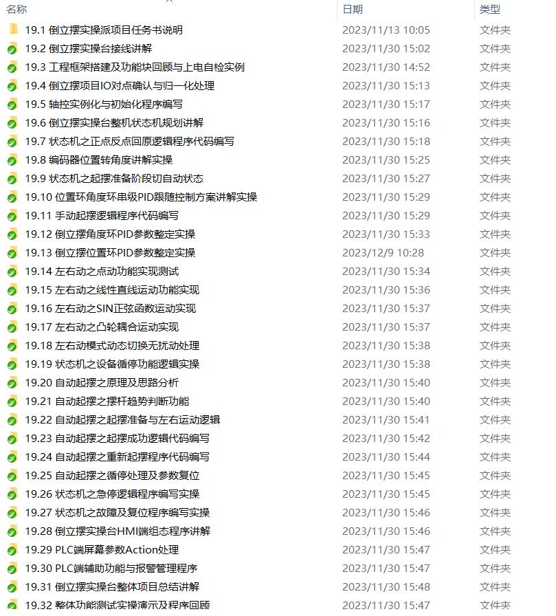 机构简介:01 PLC初学者的困惑很多PLC初学者感到疑惑,自己已经很努力了,看了很多PLC视频课程,或者是报了一些PLC培训机构线下培训班,学了一大堆乱七八糟的指令或者各种单个功能,花费了不少时间,对于基础的一些专业名词也有所了解了,但是拿到一个项目依然觉得老鼠啃天,感觉无法下手,这到底是什么原因呢?我们学习PLC最终的目的就是能独立写PLC设备项目程序,能够独挡一面,成为合格的PLC电气工程师,提升自己的工资天花板,但是入行学习的大多数人会发现,距离这个目标很远!这到底是为什么?02 初学者困惑的答案其实答案很简单,因为你压根没有学习编写项目程序的方法啊!你的学习方法不对啊!你天天看人家讲各种乱七八糟的指令,看人家读PPT,看人家搞起保停,看人家摆弄中间继电器。有些人不服气,我会跑马灯程序啊,星三角程序啊,起保停啊,常用的指令啊!是的,这些你确实会,但是你会的这些跟不会有多大区别呢? 你学的这些玩意是教师爷混时间的!事实摆在那里的,只是你不明白,因为你是小白,不懂。找工作的时候人家不关心你会不会起保停,人家关心的是你能不能拿下一套设备的完整项目程序,能不能独立做出来,。现在自动化设备已经不是起保停程序能搞定的了,一套完整设备有固有的框架结构的,手动控制程序、手动示教程序、回原控制程序、自动控制程序、参数初始化程序、EtherCAT总线初始化、参数赋值程序、工位的任意屏蔽、IO输出程序、单元的循环、单步运行、模块化编程、面向对象封装功能块等等。这些结构你听都没听过,学几个指令怎么可能就会了?!你又不是神童,非要把自己搞成神童,偏偏我们这一行你是装不过去的,你到底会不会,给个项目写一套程序就知道了!03 初学者浪费了太多时间和精力所以大多初学者在指令等基础知识上浪费了太多的时间,但是正真的基础知识也不会,因为你没有放到实际项目案例上应用,让搞个PLC选型,连同品牌下同系列的PLC型号啥功能都说不上来!所以你学一些干巴巴指令记也记不住,用也不会用。其实指令这些基础知识不用记忆,用的时候查找手册就可以了。这也是我们常说的 工业自动化是开卷的,我们需要掌握科学的问题分析方法,然后根据现象去分析,梳理出可能的原因后再去做排除法,最终就能定位到我们所需要的问题的答案上。所以一切都是浪费了自己大把时间,对于某些朋友来说也是没办法的,因为自己接触的资料就是这些,全是念PPT,讲指令一类的,另外大部分培训机构的水平都很菜,很多老师都是应届生培训一段时间没有实际项目经验就开始教学员,你想想跟着这样的老师你怎么可能学的好!而我们实操派的老师,是汇川工作了5年以上的工程师出身,都是实打实做过很多小型PLC脉冲控制、中大型PLC-codesys、EtherCAT总线多轴运动控制实战项目的,选对老师,才能保证你在这个行业能走的远!走的顺!04 初学者到底该怎么学?对于个人到底该怎么学PLC,才能达到独立做项目水平,能独当一面,实现零基础小白到PLC电气工程师的蜕变,提升自己的工资天花板?个人建议跟着实操派系统化全科班课程走一遍啥都会了!系统化大课全科班,把该讲的知识点都用项目的方式讲透了,实操派课程通过PBL项目式,循序渐进的带大家做了很多个项目,逐步打怪进阶,从零基础入门开始到进阶到高阶项目式教学,不像传统培训机构讲一堆没用的指令,都是通过实战项目,在实操中编程学习PLC。如果是有经验的小伙伴,就能发现其实一套完整项目程序用到的指令其实就常用的那么些个!对于PLC初学者而言,入门学习方式就是能找一套从0开始讲解怎么写一套完整项目程序的课程,我说的完整项目框架的编写课程,什么是完整框架的程序?就是包含点动控制、示教程序、回原控制、自动控制、报警控制、参数赋值控制、IO输出、总复位初始化,单元循环,工位任意屏蔽,单步运行,空跑、暂停、循停、急停、手自动任意切换等完整功能的,成熟的,能够稳定运行的实际项目程序。你想想,你连一套完整项目程序的框架都不知道,连一套完整项目程序怎么来的都没见过,你怎么可能写得了程序了? 实操派课程都是从0开始边写边讲一套完整项目程序的编写过程,课程中应用的程序是经过多年验证过的项目程序框架,初学者可以直接套用!05 实操派的课程理念我们的课程理念,教会学员“做菜”,从第五章开始都是项目式实操培训。不像传统培训机构讲一堆没用的指令!就像做菜,市面上好多培训机构告诉你各种原材料,讲原材料介绍一堆,但是怎么做菜的死活说不清楚。他们讲一堆乱七八糟的指令,而我们通过讲项目串知识,教大家实用的项目编程框架,然后告诉大家如何查手册,如何自学习!我们的课程开发逻辑都是“总分总”式逻辑。通过项目任务书,讲清楚当前课程项目要实现的具体功能(以终为始);然后对当前项目进行模块化拆分,分而治之,模块化课程开发(和编程思想一样);最后项目进行调试总结,知识回顾(总)而且课程中穿插各种实操,手把手教学,都是项目式实战。从简单小项目10来行代码 -> 上百行代码->几百行代码项目->上千行代码项目->几千行/.上万行 代码项目,保证都是一行一行带大家敲的,给大家分析清楚写项目程序的内在逻辑,只要大家能认真跟着我们课程节奏实操,可以做到全部项目功能复现。06 行业发展的大趋势,学会顺势而为目前行业