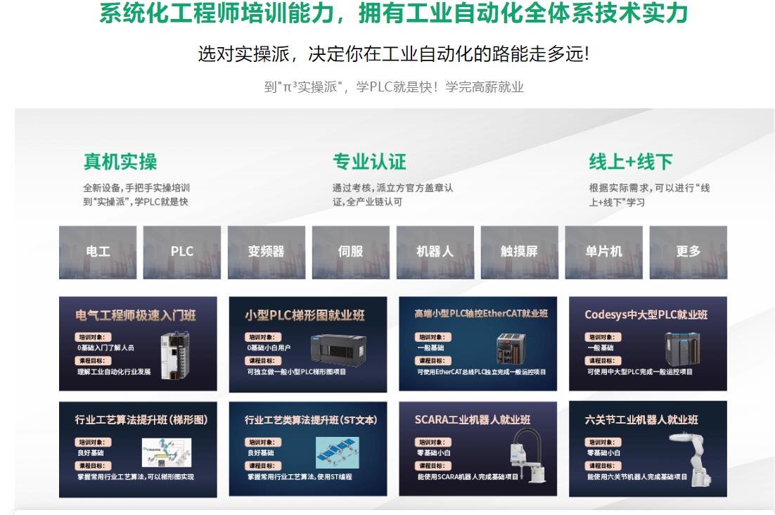 到“π³实操派”,学PLC就是快!自己折腾半年,都不如来实操派学习半个月收获大。公司前辈不教你的,我们来系统化教你!以终为始,从用出发;实操项目式培训;