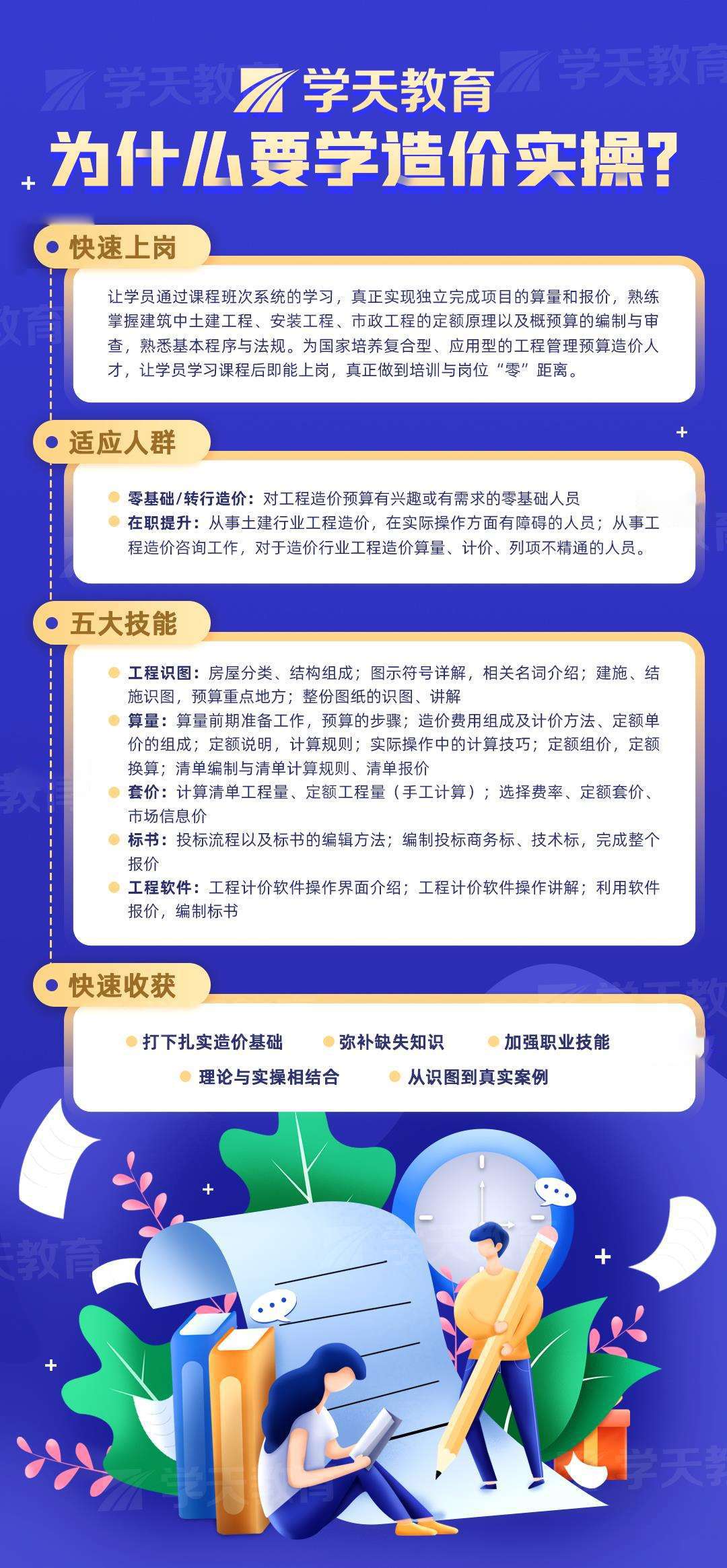 学天教育,是一家提供职业资格考试考前辅导的服务机构,近年来一直与建设部直属机构长期开展建筑类考前培训相关工作。目前已形成集5个分子公司、3个事业部、1个课程研发中心、1个客服中心多维一体的集团公司。学天教育,以“成为中国职业资格考前辅导专业机构”为愿景, 累计为20000多人提供了专业的考前辅导,被业内誉为“建造师生产基地”!