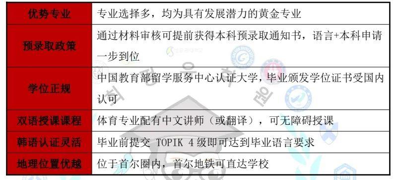 信韩大学本科预科课程是面向高中毕业生、大专毕业生及本科在读学生的大学预科课程。在未取得韩语等级的情况下,通过项目内韩国语课程、实践课程的学习,提前锁定本科入学资格。