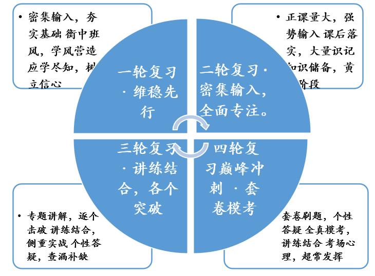 4:分层定制,根据高考分数及入学测试分数进行分层分班教学,避免学生因学习内容不足或过量导致的两级分化,保证教学进度、内容与各班级学生具体学情匹配。