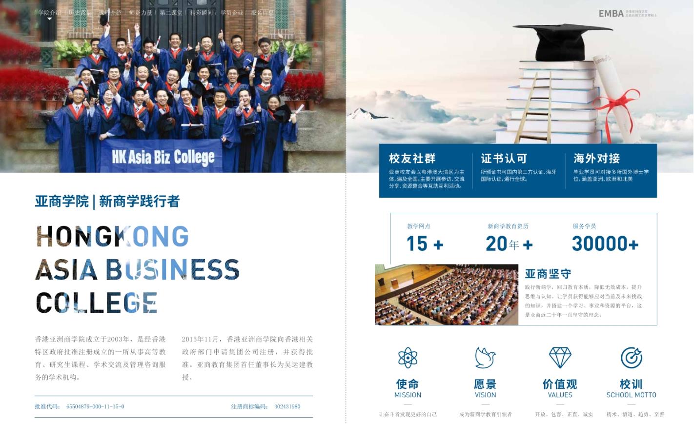 机构简介:香港亚洲商学院(简称亚商)成立于2003年,是经香港特区政府批准注册成立的一所从事高等教育、研究生课程、远端教育、学术交流及管理咨询服务的学术机构。主要科目项目是MBA、EMBA 课程教育、EDP课程、海外合作高校博士项目对接、创业孵化器、青少年素质教育及海内外游学考察等。2005年初进入内地市场,迄今在内地已经运营超过十九年时间。在读及毕业企业家及职业经理人MBA\EMBA学员约一万五千名,共计服务超过两万名学员。亚商使命:让奋斗者发现更好的自己亚商愿景:成为新商学领域的引领者发展目标:打造中国商界精英黄埔军校亚商定位:提供专业MBA、EMBA 课程及交流服务教育理念:精术、悟道、趋势、至善价值观:开放、正直、诚实、有教无类核心四大优势:管理团队 :亚商团队有超过22年MBAIEMBA教学管理资历; 教学网点:在国内有 超过16个教学网点, 覆盖主要经济圈;导师团队:亚商MBA导师团队在国内商学教育领域是卓越的 ;课程迭代:快速迭代课程,并建立线上线下一体化课程体系;解决方案:亚商为学员提供多元化的证书解决方案。经过二十年的积累和沉淀,亚商学院已经培养出了大批优秀的毕业生。他们不仅在各自的领域取得了卓越的成就,更成为了推动社会进步的重要力量。亚商学院的毕业证书及分数单得到了多个国际官方认证机构及海外高校的认可,为学员的职业发展提供了有力的支持。展望未来,亚商学院将继续秉承“以学员为中心”的教育理念,不断探索和创新。学院将紧密关注商业发展的新趋势和新需求,为学员提供更加实用、前沿的商学课程。同时,学院还将加强与国内外知名企业和高校的合作,为学员提供更加广阔的发展空间和机会。如果你渴望在数字经济时代成为一名卓越的商业领袖,那么亚商学院将是你的不二之选。在这里,你将与优秀的教授学者、志同道合的学员和校友共同成长,共同探索商业的无限可能。加入亚商学院的大家庭吧,让我们一起开启新商学之旅,书写更加辉煌的未来!课程设置:《企业战略管理》《财务报表分析》《管理经济学》《战略营销管理》《人力资源管理》《目标与绩效管理》《商业模式管理》《卓越领导力》《组织行为学》《宏观经济与趋势分析》《新媒体时代品牌塑造与营销创新》《创新管理》《人工智能与大数据》《公司治理与股权》《沟通与谈判》《管理心理学》《企业法律与税务》《创业管理》《博弈论》 《产品与产品管理》《宏观经济分析》《管理哲学》《金融学》《新媒体行销》《数字化升级》《资本管理》《压力与情绪管理》《流程管理与优化》《股权与合伙人》《演讲与表达》《九型人格应用》《客户关系管理》《阿米巴经营与京瓷哲学》《斯坦福职场课》《流程管理与优化》《管理沟通》剧本杀 《国学管理智慧》注:每个校区会根据当地市场环境微调,课程时时更新升级迭代。招生对象:总经理、创业者、合伙人、高管、专业人士等企业中高层管理者。报名条件:从事管理职位;具有五年及以上工作经验;具有大专及以上学历。学习时间:学分制,在职学习18个月左右。每个月利用周末上课2-3天;第二课堂另计。 学习证书:学员修完全部课程并考核合格,由香港亚洲商学院颁发工商管理硕士毕业证书。学费标准:MBA面授班:41800元(RMB)。含面授学费、教材讲义、学籍管理、茶点、书包、校服、学生证、校徽及证书等;MBA线上班:25600元(RMB)。含学费、教材、学生证、校徽、校服、书包、学籍管理及证书等。EMBA面授班:51800元(RMB)。含面授学费、教材讲义、学籍管理、茶点、书包、校服、学生证、校徽及证书等;EMBA线上班:29600元(RMB)。含学费、教材、学生证、校徽、校服、书包、学籍管理及证书等。注:每年学费会有所上调,详情请咨询招生老师。报名流程:提交报名表及个人资料→ 入学资格审核→ 发放录取通知书→交纳学费→注册学藉、开始正式学习报名材料:入学申请表、身份证正反面复印件或护照或港澳台身份证、最高学历证明 、2寸彩照片、学费