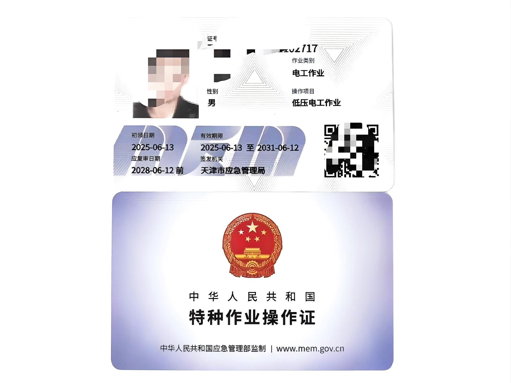 2、证件由天津市应急管理局监制颁发,6年有效期,3年复审。全国通用
