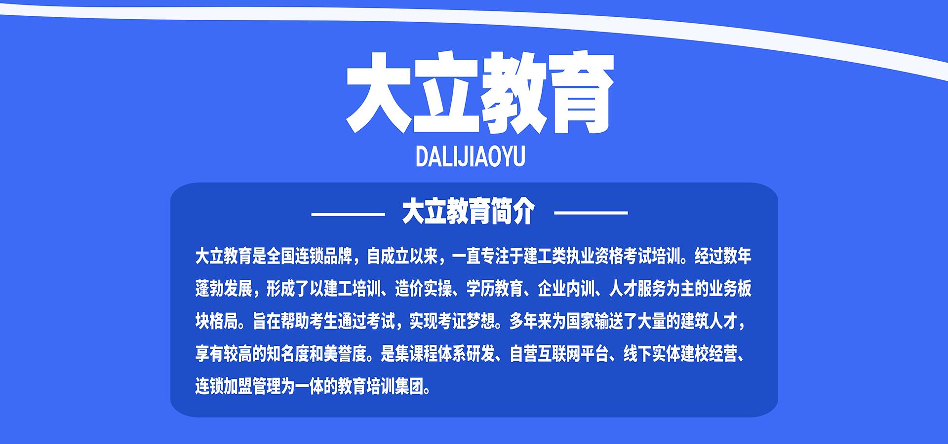 天津大立教育成立于2014年,专注于建工行业考前培训。其业务涉及一级建造师、二级建造师、监理工程师、消防工程师、九大员培训、造价工程师、安全工程师、学历教育等考试辅导、旨在帮助广大考生了解考试的动向、考试时间、报名审核时间;提供一些相关的历年真题和模拟试题,同时提供高质量的面授和网络课程,以便能让广大考生顺利通过考试。大立教育拥有强大的教学实力、完善的管理体系和全国统一的教学服务流程,值得信赖!大立教育是从事建筑工程培训比较早的连锁教育品牌,在全国享有较高的知名度和美誉度。
