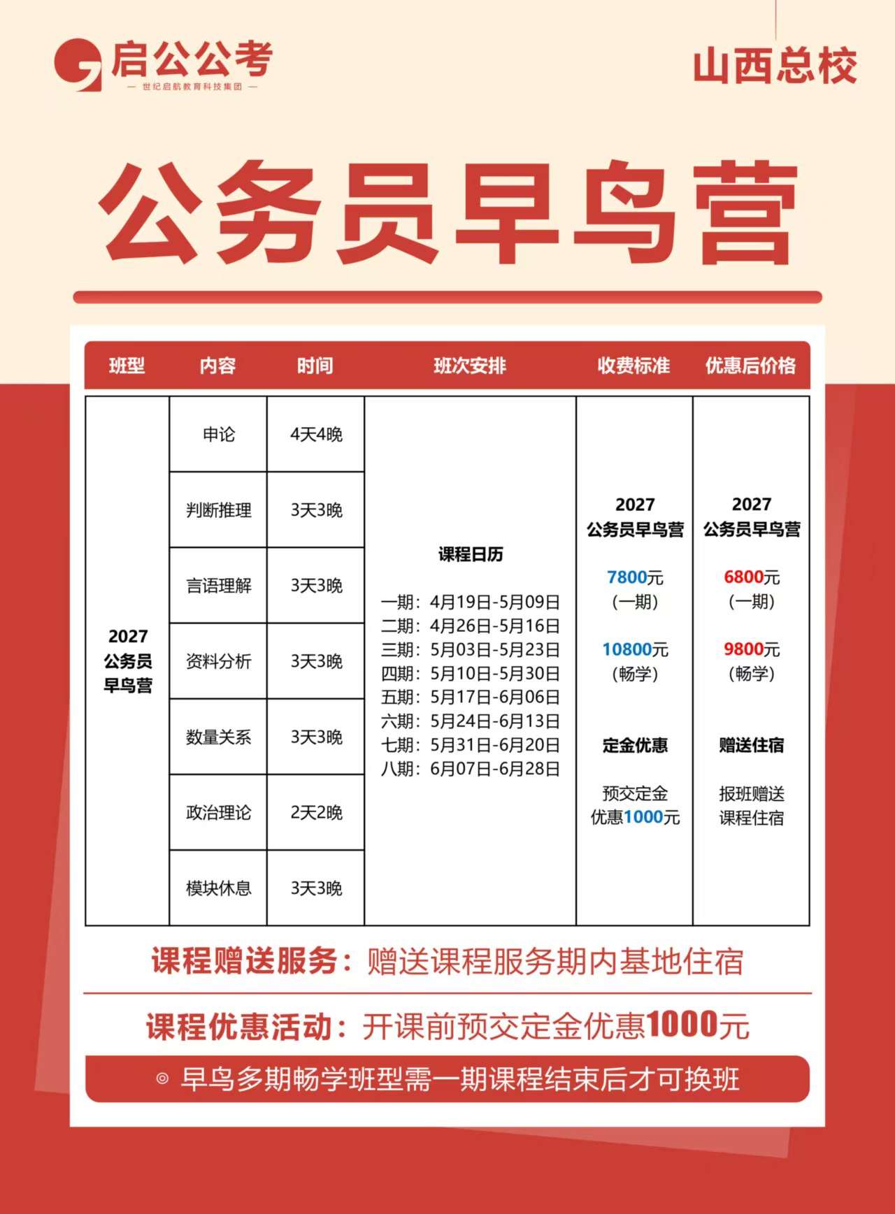 课程赠送服务:赠送课程服务期内基地住宿