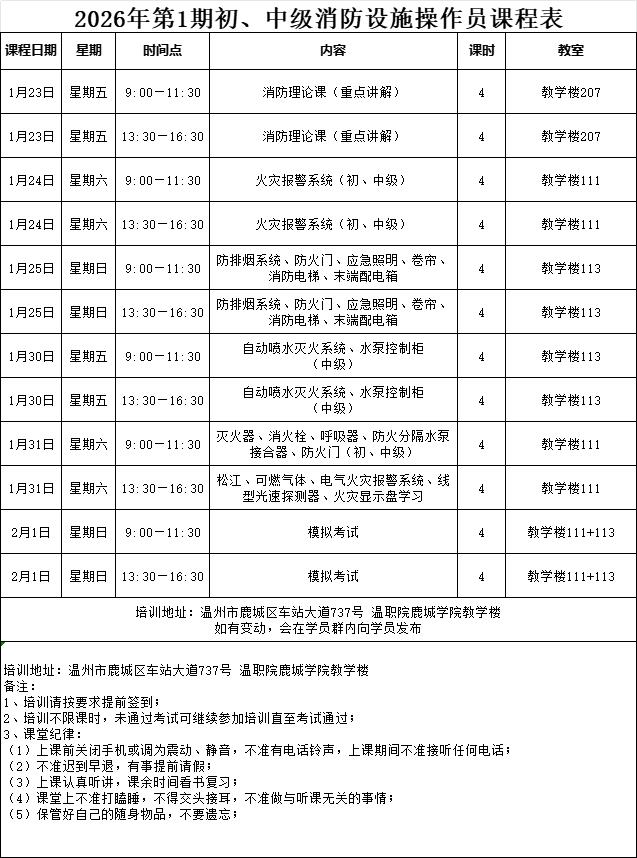 温州初级消防设施操作员