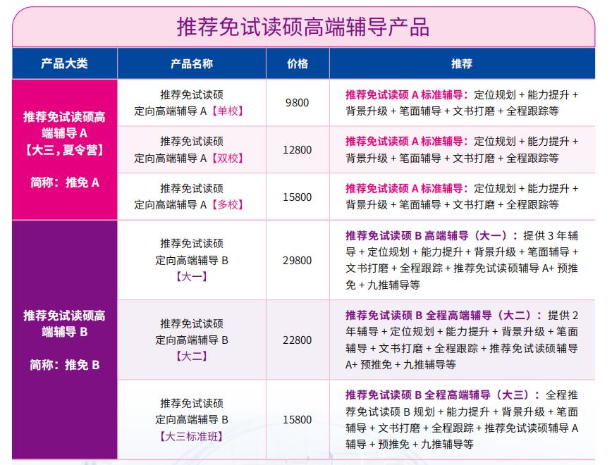 为了帮助广大同学能够顺利保研至理想高校,万学海文整合30年考研培训经验,提供十三大高端辅导项目即保研规划、志愿填报、科研指导、科目辅导、英语口语、竞赛辅导、面试指导、网申指导、模拟面试、系统填报、保研答疑等多方面服务,为保研学子保驾护航。助力保研学子实现保研梦想。