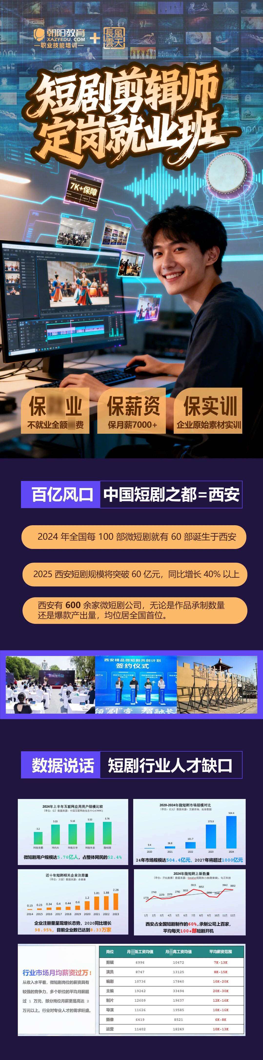 长风云天传媒聚焦短剧产业人才孵化与资源整合,构建三层支撑体系:产业协同:成立“西北短剧联盟”,打通剧本备案-拍摄-分发全流程;与腾讯视频、爱奇艺等签订S+级项目优先合作,年承制短剧20部+。