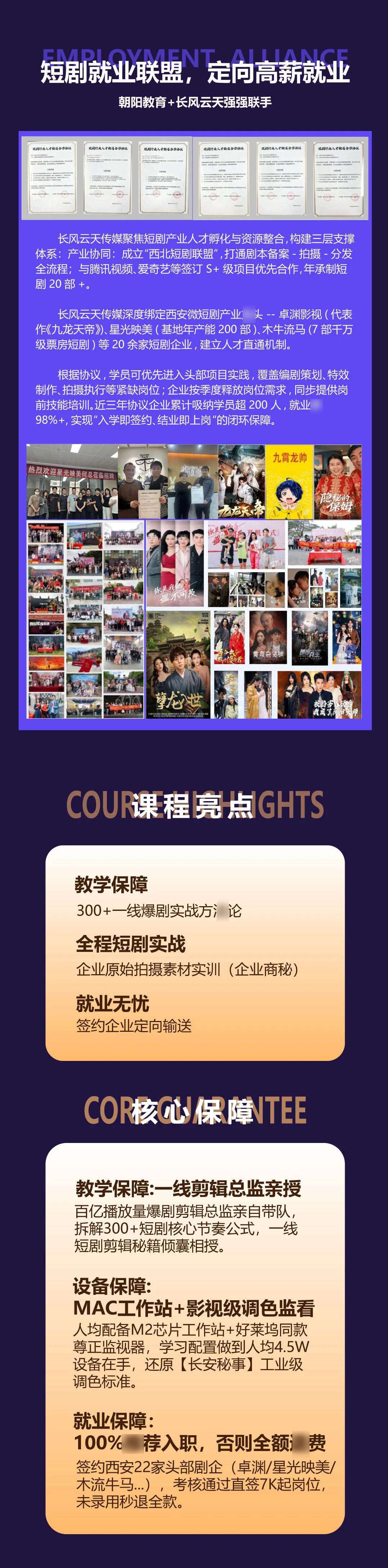 根据协议,学员可优先进入头部项目实践,覆盖编剧策划、特效制作、拍摄执行等紧缺岗位;企业按季度释放岗位需求,同步提供岗前技能培训。近三年协议企业累计吸纳学员超200人,就业98%+,实现”入学即签约、结业即上岗”的闭环保障。