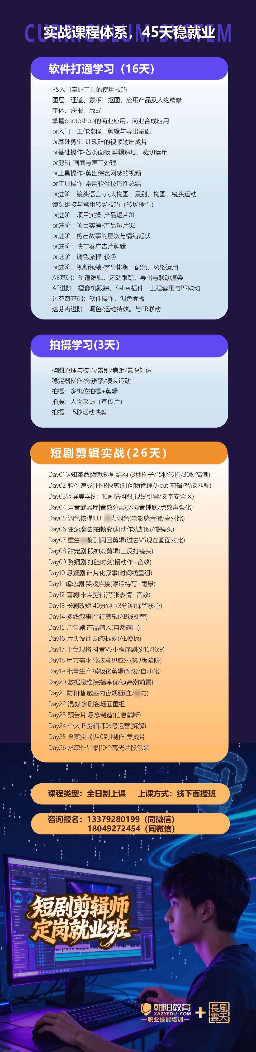 机构简介:朝阳设计培训学校成立于2005年,是经国家相关部门批准的专业、正规、合法的教培机构;多年来的办学历程,已发展成为综合实力较高的培养复合型专业人才的学校,形成了完善独特的教学教育体系、集教育培训、教育研发、项目研发等于一体的型综合性教育机构。多年来,朝阳人一直坚持“做负责任的教育,实现学员价值”的办学宗旨,依靠设计精英、设计总监、艺术院校讲师等,培养室内设计、平面设计、网页电商设计、视频剪辑制作、C4D设计、PS高级合成,OFFICE职场办公等人才。为上百家企业培养输送专项人才。获得了众多学员的好口碑,并获得十佳培训机构。