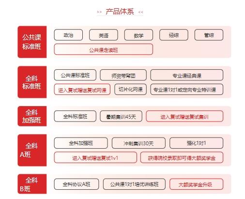 乐学产品主要面向在校生,通过周末走读,充分利用碎片化时间学习;暑期及冲刺集训,关键时期集中学习;差异化补弱培优,个性化1对1辅导,考前题海演练班,乐学云课堂,匹配全职双师五大精细化服务,择校、答疑、测试、督学,PSM管理,全程多元化的课程服务,帮助学员实现考研梦想。