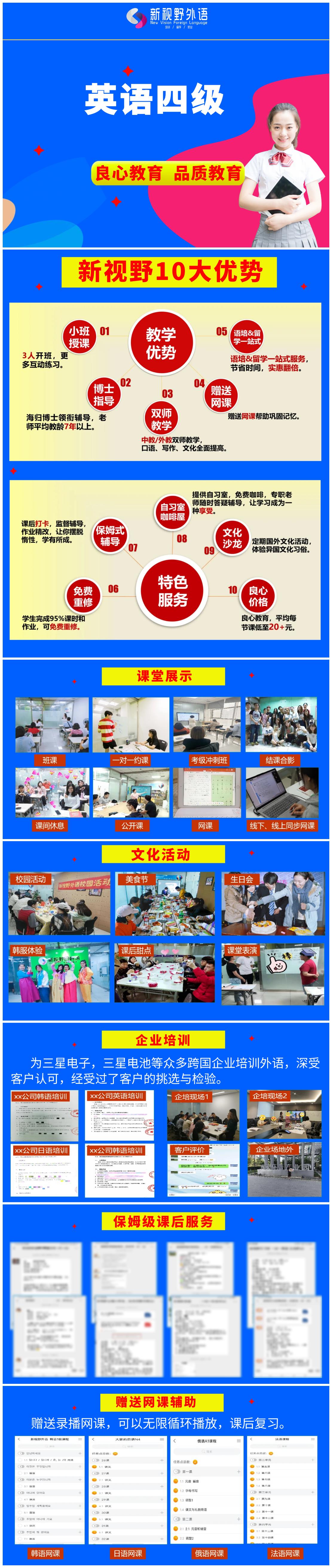 机构简介:新视野外语成立于2015年,是西安市专业的语言培训机构,已发展为雅思、托福、日语、韩语、俄语、德语、法语、西班牙语、意大利语、葡萄牙语、泰语、国际课程等多语言培训中心和留学服务机构,至今已培养3000多名外语专业学员。学校师资力量雄厚,博士领衔指导授课,老师均是留学海归或硕士研究生,教学经验丰富,治学严谨,小班授课,全程跟班,课后在机构自习,并有专业外教加强口语、写作以及文化课训练。多年来从我校出去的学生90%以上都通过等级考试,学校定期举办免费文化课、外教沙龙,使学生感受国外文化和乐趣。学校也和多家企业合作,为三星电子,奈佳罗软件、韩阳电子等企业培训英语、日语、韩语、俄语等,受到企业学员高度认可,长期签约。学校秉承“坦诚待人,真诚做人,虔诚育人”的理念,做真正的品质教育,良心教育。同时我们为学员提供一站式留学服务申请,挖掘学生优势,提供精确的校园信息和高质量的申请文书、套磁、面试辅导、签证等,帮助学生冲击高校,价格亲民,做真正的良心教育。选择新视野的10大理由教学优势:1、小班授课:3人开班,每节课均有互动,更多口语听力练习。2、博士辅导:海归博士领衔指导,老师平均教龄7年以上。3、赠送网课:课后网课帮助巩固记忆。4、双师教学:中教/外教双师教学,口语、写作、文化全面提高。5、语培&留学一站式服务:节省时间,实惠翻倍。服务特色:6、辅导班+读书屋+咖啡厅的结合体:提供自习室,免费咖啡,专职老师随时答疑辅导,让学习成为一种享受。7、保姆式服务:课后打卡,监督辅导,作业精改,让你摆脱惰性,学有所成。8、免费重修:学生完成95%课时和作业,未达到教学目标,可以免费重修。9、文化沙龙:定期举行文化活动,体验国外文化习俗,提前适应国外生活。10、价格亲民:良心教育,价格实惠,性价比超好。新视野留学申请特色1、资深顾问,专业服务:申请团队由海归博士、硕士团队及海外高校导师共同组成,提供一手院校信息和内部审核经验。2、定制文案,背景提升:采用三维评估体系,给每个学生从学术背景、个性特质、职业潜能三方面定制方案,挖掘学生独特的故事和亮点,做到一人一案,杜绝模块化方案,批量式生产。3、与学校深度合作,提高申请成功概率:我们与海内外多所院校保持紧密合作,可以直接内推,大大提高申请成功概率。4、“语培+留学”一站式服务:语培、留学深度协同,无缝衔接,避免语言学习时间和留学申请节点脱节,规划更科学。5、 精准的背景提升规划:我们不堆砌无用的活动,只为您的目标专业量身打造提升计划。根据目标专业,规划相关的科研、实习、竞赛或公益活动,有效提升软实力。6、全程一对一专属服务:从签约到入学,一位资深顾问全程负责,学生随时知道进度到哪,拒绝流水线作业和频繁更换对接人。7、过程公开:所有服务过程实时可查,申请账号密码向学生公开,过程完全透明。8、价格透明:一份价格,全程服务,无任何隐藏收费,在合同明确列清所有服务项与费用,杜绝后期加价,践行“良心教育”。9、“保姆式”督导与精准进度管理:我们不仅是规划师,更是您的学习闹钟和进度管家, 针对拖延症学生,提供个性化的时间节点提醒、材料催办和心态疏导,确保计划严格执行。10、全程留学服务:我们不止做到“成功留学”,而是要做到“留学成功”,从语言学习,留学申请,签证辅导,行前指导、接机住宿,学业支持、学历认证等全程服务,真正解决您的后顾之忧。11、良心价格&免费申请:学生以低的费用享受好的服务,部分国家可以免费申请。12、申请过程中随时退,让学生没有后顾之忧。新视野留学申请流程