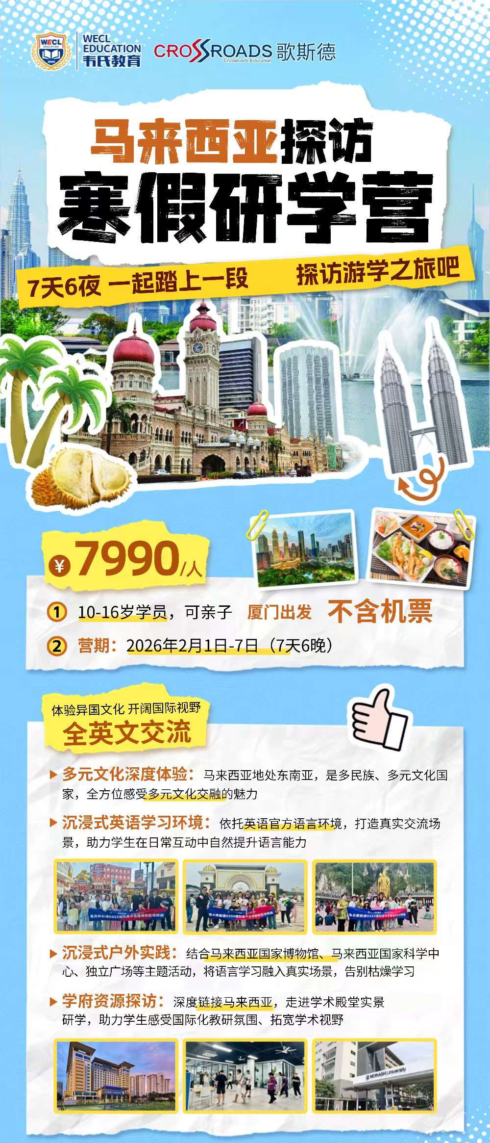 沉浸式户外实践:结合马来西亚国家博物馆、马来西亚国家科学中心、独立广场等主题活动,将语言学习融入真实场景,告别枯燥学习