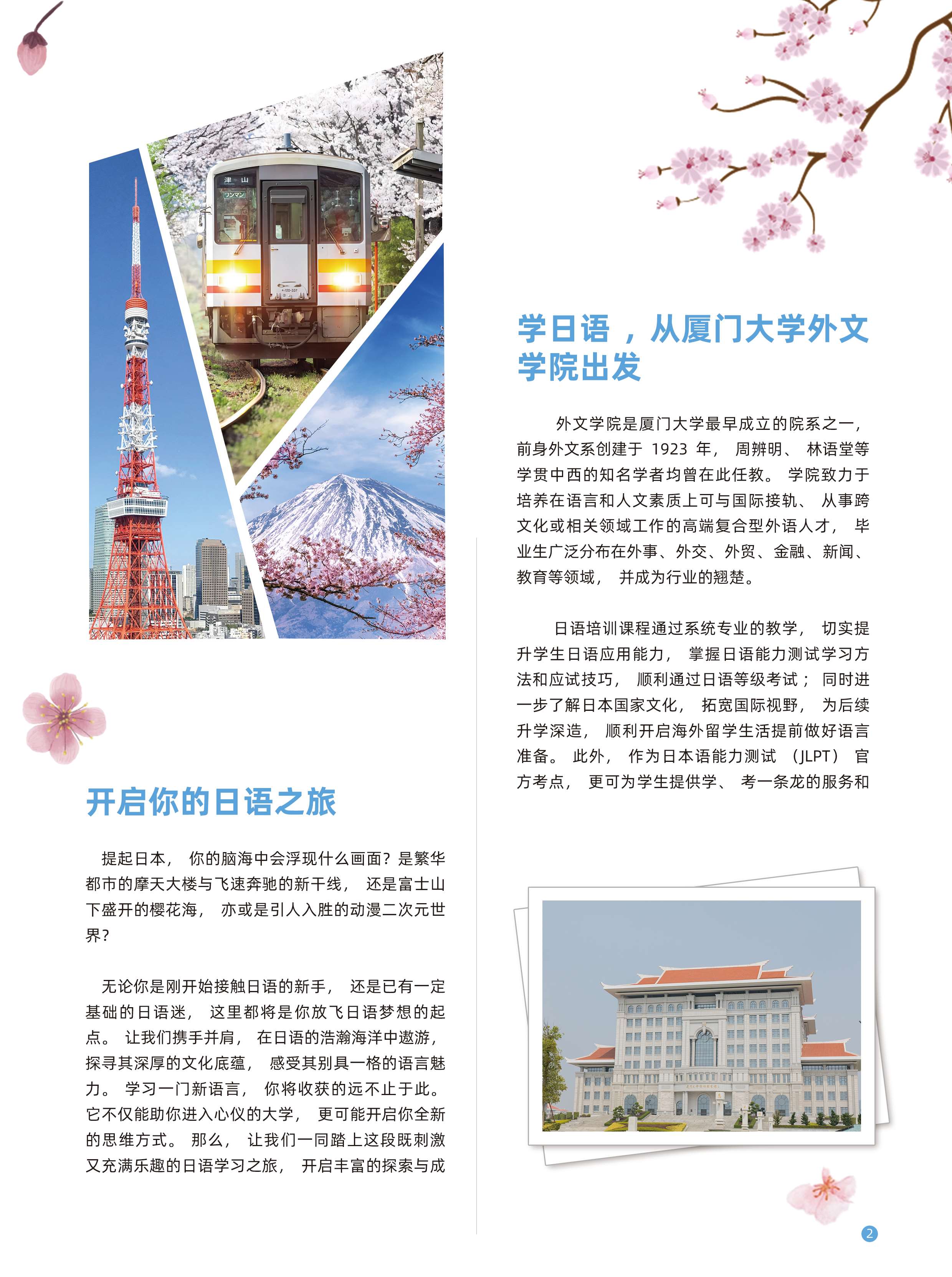 机构简介:外言教育是一个言近旨远的教育品牌,专注语言教学十余年,由福建省内第一批开创日本留学业务的人员创立,作为省内日本留学较早的先驱团队,外言教育一直致力于为中国学生提供更优质的院校资源,更专业的语言教学和留学服务。外言教育的团队自2008年起为无数家庭提供了日本,英国,意大利等主流国家及地区的语言教学和专业留学服务,师资团队从最初的境外业务开始至2015年回到福建发展境内语言教育,负责福建省内多所985、211高校及高中的联合办学机构的日常运营,为在校学生提供语言学习,留学咨询和服务。并与世界大多数主流院校保持友好合作关系,外言教育集合了国内外优质教育资源、拥有长期国际教育服务经验、开创特色留学项目,屡获学生、家长、合作方的一致推荐。