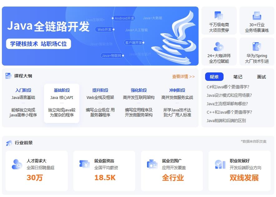 13大课程模块,知识技能全,丰富的企业级项目练习+全流程项目峰会实战,帮助您掌握足够的代码量和实战能力