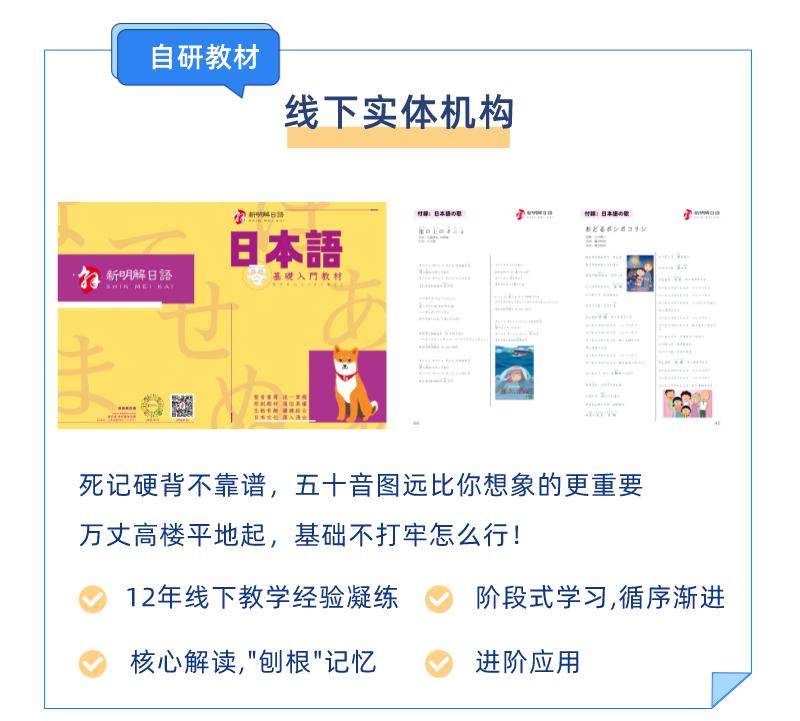 机构简介:新明解日语其前身是中日合资的「浩泽教育」,创立于2012年。2015年申请注册商标,更名为「新明解日语」。新明解日语多年来只专注于提供日语培训、日本留学,赴日就业一站式服务,是一家拥有教育局颁发「办学许可证」的正规教育培训机构和日本留学服务机构。公司拥有经验丰富的专业留学团队,为不同需求的学生制定适合其自身的留学规划。在日本,我们拥有自己的「新明解留学生群」,为「师弟师妹们」提供力所能及的帮助。从学习日语到日本生活的一站式留学服务,让家长放心,让学生安心。至今,新明解日语与日本多家学校和私塾建立起直通的桥梁,已有众多学生通过新明解日语实现了他们的日本留学之梦。