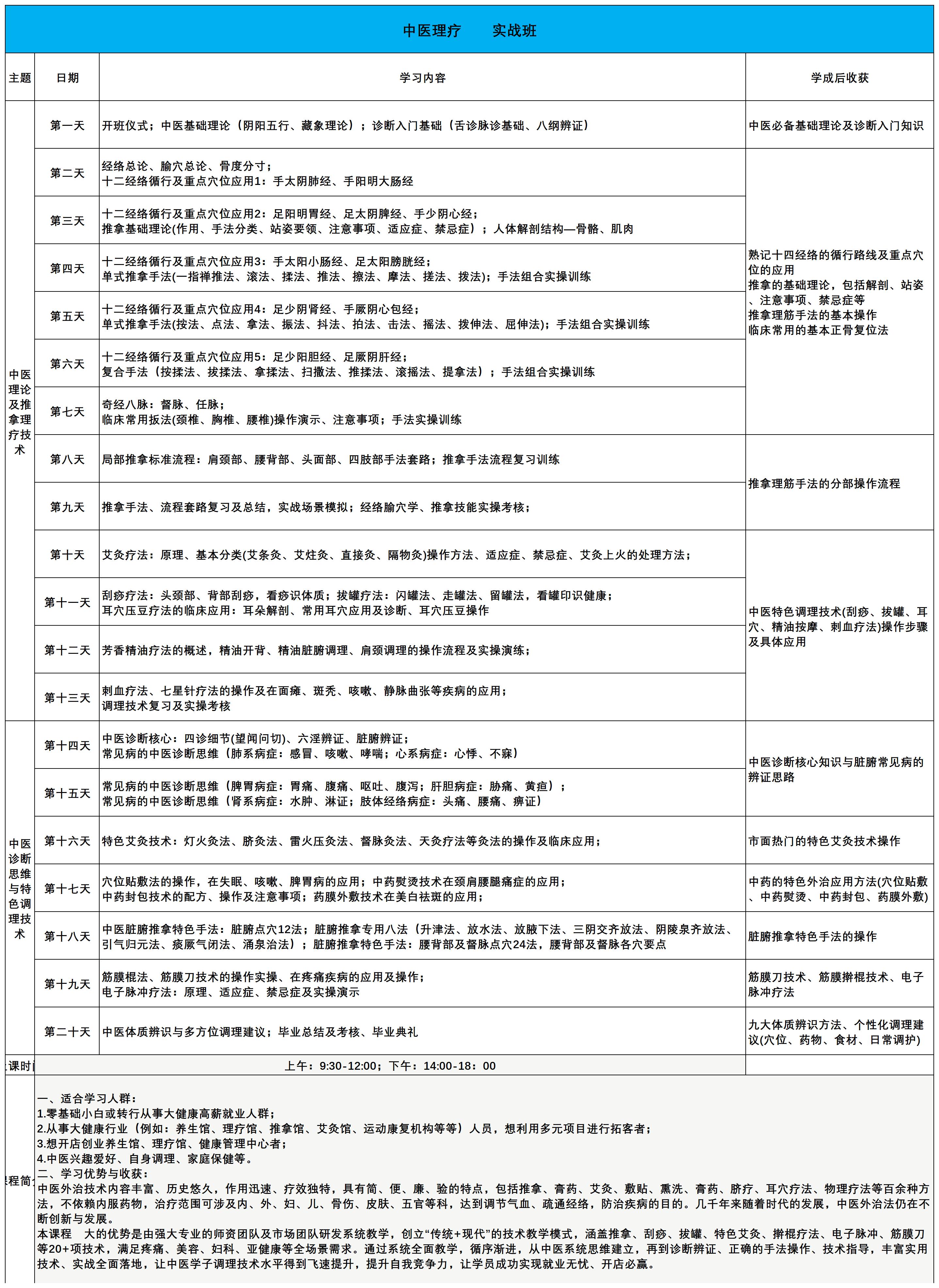 6. 学习市面特色艾灸技术操作,中药的特色外治方式,脏腑推拿,筋膜刀,筋膜棍,电子脉冲等特色理疗技术