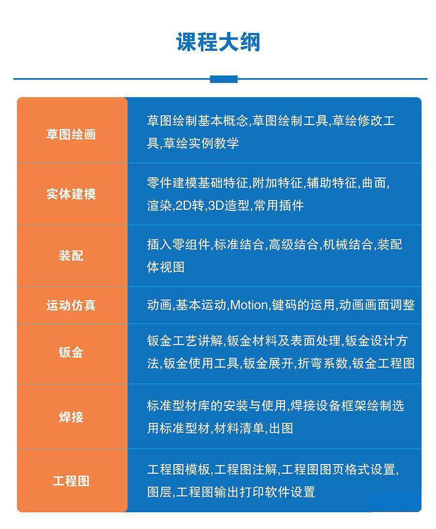 可考证书: 全国《SolidWorks应用证书》及学院《结业证书》(考试费用另外支付)
