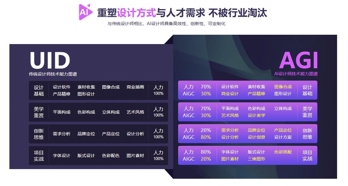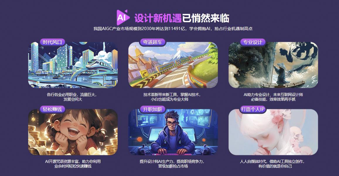 适合未来希望从事商业设计岗位的学员,从零到一系统性学习AI人工智能技术与设计知识。通过AI人工智能的加持,在设计领域辅助学员完成超出想象力的商业设计解决方案,并实现职业上的突破与晋升