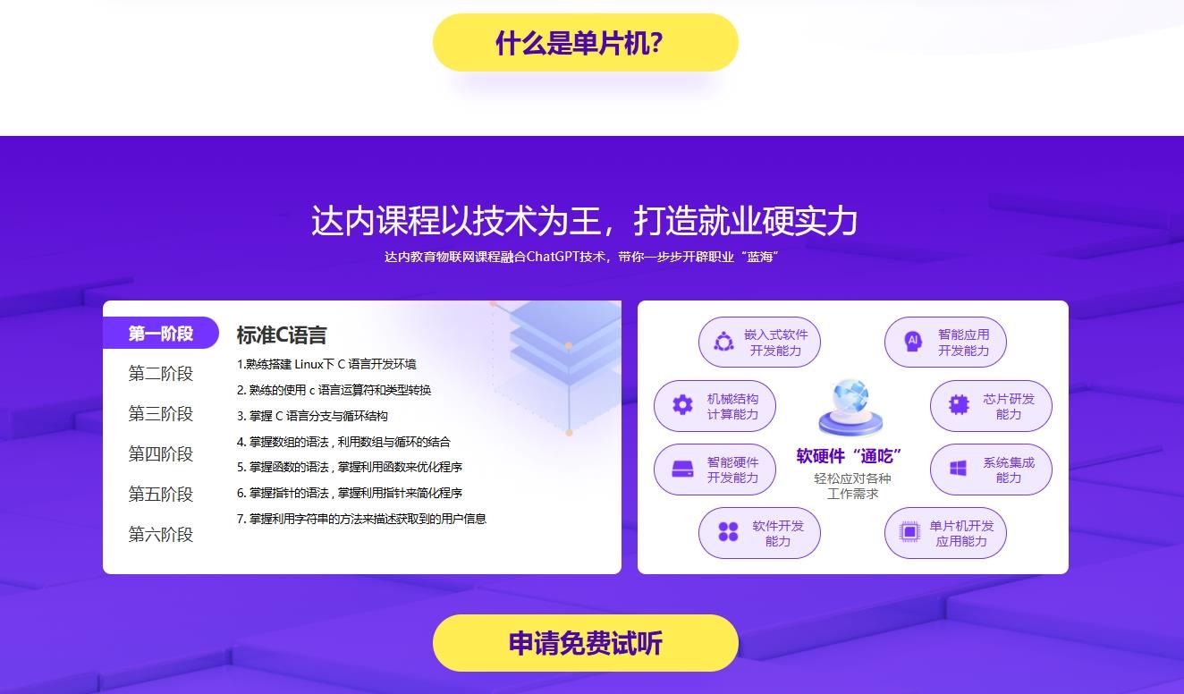 达内拥有200名实训专家及1000名研发人员,目前已形成了Java、C++、C#/.Net、 PHP、嵌入式、软件测试、UID、网络营销、Linux云计算、主办会计、UED、WEB前端、Java大数据、Unity-3D、少儿电脑编程、少儿电脑创意、乐高机器人等成熟的课程体系。