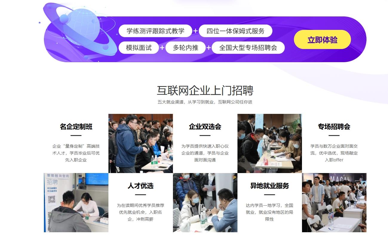 机构简介:郑州作为人口大省河南省的省会城市,具有广泛的地域优势和客户群体优势。达内教育集团成立于2002年,是一家由留学海归创办的高端职业教育培训机构,是中国一站式人才培养平台、一站式人才输送平台。达内拥有200名实训专家及1000名研发人员,目前已形成了Java、C++、C#/.Net、 PHP、嵌入式、软件测试、UID、网络营销、Linux云计算、主办会计、UED、WEB前端、Java大数据、Unity-3D、少儿电脑编程、少儿电脑创意、乐高机器人等成熟的课程体系。二、品牌历程2001年8月:由加拿大海外专业人士在加拿大多伦多成立2002年9月:入驻中关村国际孵化园,成为中关村园区的IT培训公司2003年9月:获得美国500强私人企业-美国国际数据集团IDG投资,成为中国获得国际资本投资的IT培训公司2004年3月:被信息产业部授权为“全国信息技术人才培训基地”2004年10月:与新浪、搜狐、UT斯达康、百度等共同荣获“中关村优秀留学人员创业企业”2005年,达内推出“按效果付费”的信贷培训模式2006年,达内成为业界获得德勤“亚太区高科技、高成长500强”,并连续4年蝉联该奖项2007年,达内联合SUN公司成为业界制定JAVA中国培训标准2008年1月:达内获得2007年度“十大品牌教育集团”及“受推崇IT培训品牌”荣誉2009年1月, 达内获评2008“中国十大品牌IT培训机构”2010年1月, 达内获得德勤“亚太地区高科技、高成长亚太500强”2011年,“职场传帮贷”是达内在业界推出的面向个人的P2P信贷服务平台2012年8月, 达内被授予“2012年度受信赖企业”2014年4月3日赴美国纳斯达克成功上市(股票代码TEDU)2015年,达内成为业界推出少儿编程的教育公司2016年,施行“因材施教,分级教学”教学体系,招生人数突破10万人,销售额突破20亿2017年,市值突破10亿美元,成为职业教育的独角兽2018年,达内携手阿里橙功商学院,强强联手培养高级网络营销人才2019年,达内、华为、院校三方携手,助力ICT人才生态建设2020年,后疫情时代 OMO赋能,开启线上与线下教学的OMO教学模式