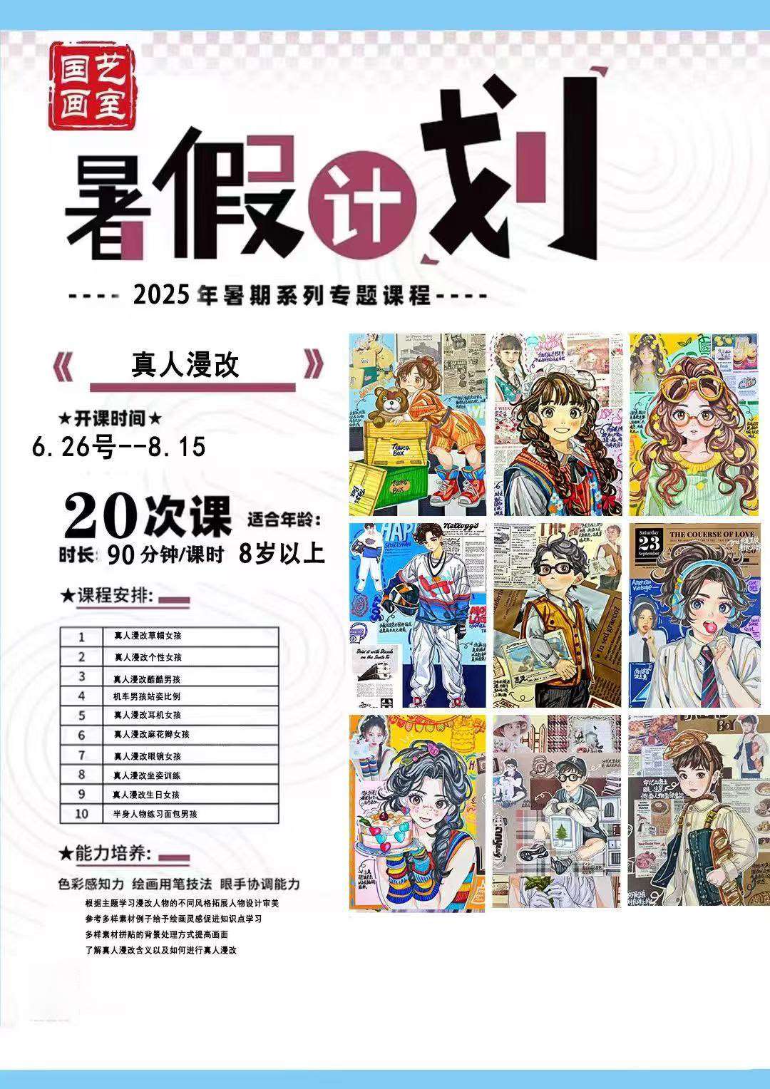 根据主题学习漫改人物的不同风格拓展人物设计审美参考多样素材例子给予绘画灵感促进知识点学习多样素材拼贴的背景处理方式提高画面了解真人漫改含义以及如何进行真人漫改