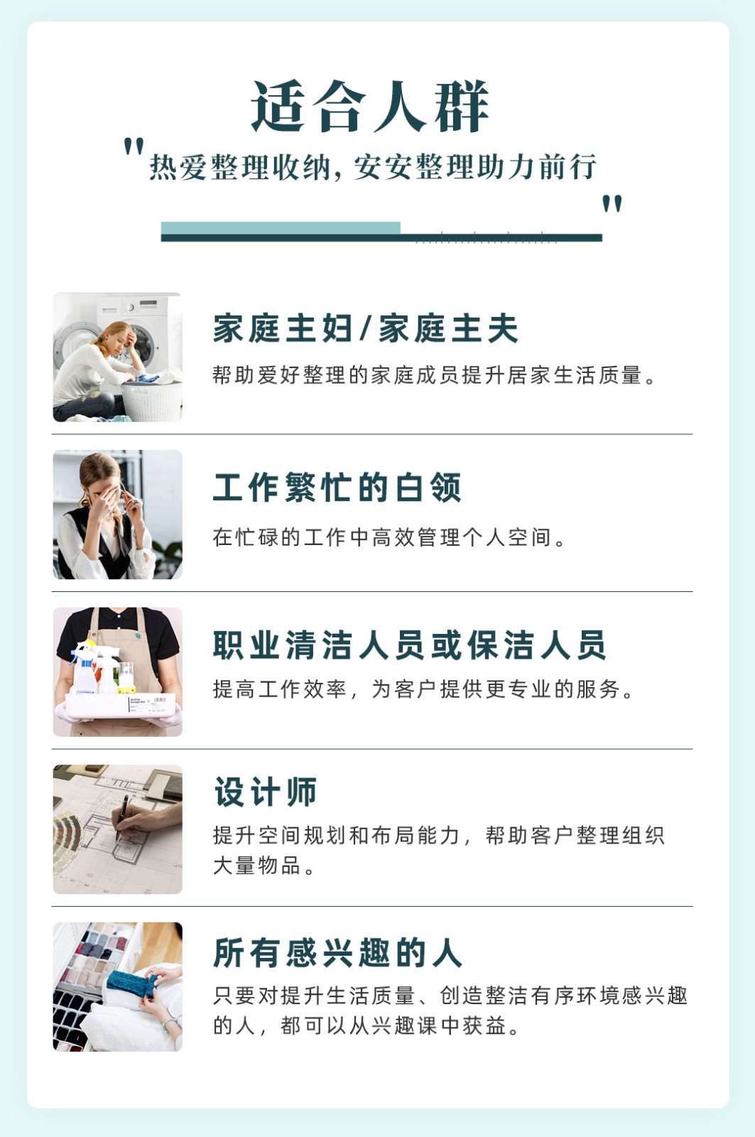 机构简介:安安整理(北京)科技服务有限公司成立于2012年,注册资本金2000万元。是一家集整理收纳职业技能教学与专业培养、服务输出与产品研售于一体的新型科技服务公司。为客户提供全屋整理、办公室整理、奢侈品整理、打包服务等高端私人定制服务、同时也为企业、合作院校提供私人定制化的企业校园服务。安安整理品牌在短短几年间,一跃成为国内整理收纳行业的头部企业,奠定整理收纳规范技能课程与服务标准流程,参与制定及主编国家《整理收纳师国家职业技能标准》,是全国商贸服务业职业技能等级评价规范 《整理收纳师》的编写专家、《全国新职业和数字技术技能大赛》裁判长与专家组组长,全面推进了整理收纳行业的发展。截止2022年安安整理已发展成为拥有1000+安安整理收纳师从业人员,20000+个人整理收纳师爱好者,200+国内外服务城市,40000+家中日家庭服务,30万+小时总服务时长,稳居行业头部企业地位。